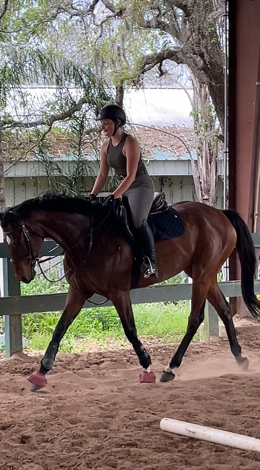 A training ride can greatly benefit a horse by receiving information by an educated seat, leg, and hand. When the horse learns how to use their body properly undersaddle, understanding of information is gained. The muscles in the body are also allowed to flourish. This creates a confident, healthy horse.